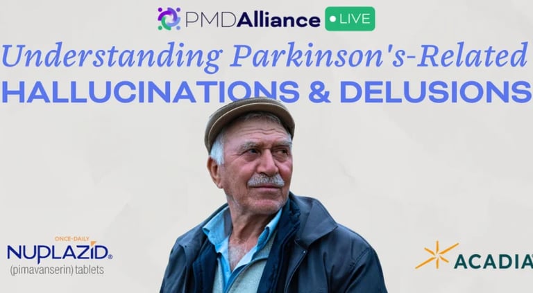 If you or your loved one is experiencing Parkinson’s-related hallucinations and delusions, there may be something you can do. This free educational program will explore the symptoms of hallucinations and delusions associated with Parkinson’s disease and an FDA-approved treatment. We’ll hear from a Parkinson’s disease specialist and someone who has experienced PD-related hallucinations or delusions. Join us to learn more together!