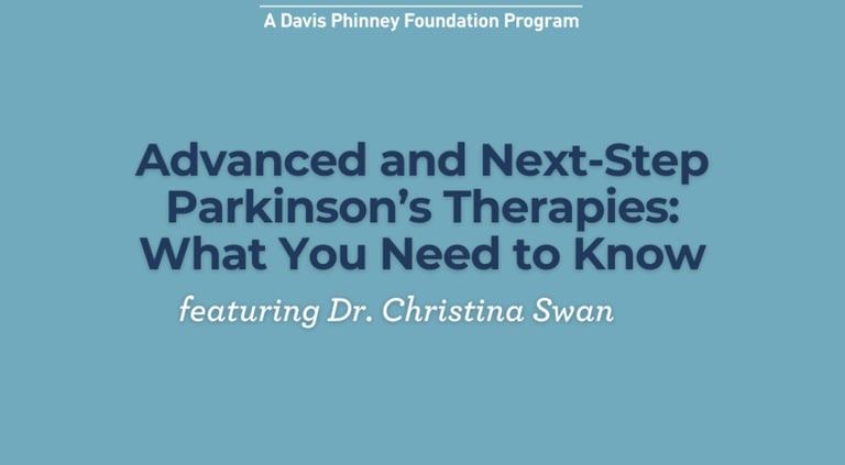 Dr. Swan will discuss extended-release and infusion medications, deep brain stimulation, focused ultrasound, and more. We’ll also discuss the right questions to ask your doctor so you can make informed and empowering decisions.